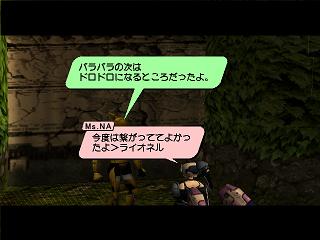 画像の大きさバラバラなのはご愛嬌 (C)SONICTEAM/SEGA,2000,2001 申し訳ありません、クリスさん。私にはあのゴリ倒せませんでした。 ところでGC版EP2のエリさんて親戚じゃないですよね? (C)SONICTEAM/SEGA,2000,2001 まぁこのあたりではまだワーセレで喋ってたんですが… (C)SONICTEAM/SEGA,2000,2001 あ、彼女はハニュエールなのにライフルですね。 (C)SONICTEAM/SEGA,2000,2001 いつまでも息子に心配かけるラクトン氏。 (C)SONICTEAM/SEGA,2000,2001 これがアナの彼氏?それとも… (C)SONICTEAM/SEGA,2000,2001 アナの好みってよく判りません。(余計なお世話) (C)SONICTEAM/SEGA,2000,2001 もしくはウエポンズのメンバー(笑)。クエスト全部クリアした猛者とか? (C)SONICTEAM/SEGA,2000,2001 燃えてましたね、今回。 (C)SONICTEAM/SEGA,2000,2001 例のクエストでは悲劇でした(涙)。せっかく通路に引っ掛けておいたのに…(涙々) (C)SONICTEAM/SEGA,2000,2001 倒れながらの名演技でございましたーー。
